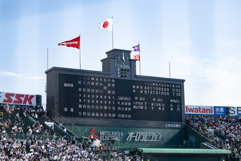 盈進高等学校硬式野球部は7日(日)、甲子園大会(全国高等学校野球選手権大会)2日目の第3試合におきまして、山形県代表の鶴岡東高校と対戦しました。生徒(選手)たちは伝統のユニフォームで誇り高くよく戦いましたが惜しくも〈盈進7-12鶴岡東〉で敗れました。