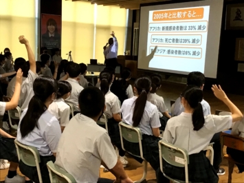 7月19日(月)午後から順天堂大学国際教養学部のニヨンサバ・フランソワ先生をお招きして、第1回ホンモノ講座を全校生徒対象に行いました。