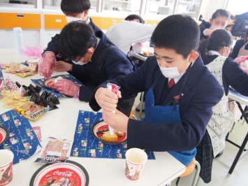 Singing Timeでは、McCartney先生と一緒にクリスマスの日に流れる曲を英語で楽しく歌いました。Cooking Timeでは、Baumkuchenに生クリームを添え、たくさんのお菓子でトッピングした「オリジナルクリスマスデザート」を作りました。自分で作ったデザートを美味しそうに食べる姿がとても印象的でした。Art TimeではNguyen先生と「クリスマスリース作り」に挑戦し、サンプルを見ながら、何とかクリスマス当日までにリースを完成させることができました。また、「クリスマスプレゼント交換」を行い、最後は参加した生徒一人ひとりに「お菓子の詰め合わせ」のサプライズもありました。色々な英語の先生方や学年の仲間と「英語」を使ってコミュニケーションをとることに挑戦できた1日でした!