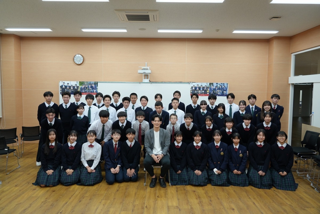 また、全体講演会後に行われた希望者による座談会では、バスケットボール部の生徒や、将来マネジメントや経営に関する仕事に就きたいという目標を持った生徒が多く集まり、より深い内容のお話を聞くことができました。座談会終了後も岡崎さんの周りには多くの生徒が質問に集まり、岡崎さんからたくさんのことを学ぼうとする姿がありました。