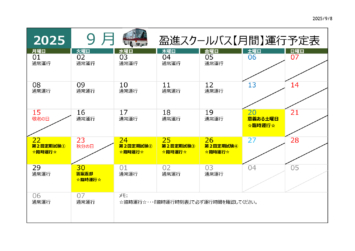 9月のスクールバスについて掲示いたします。