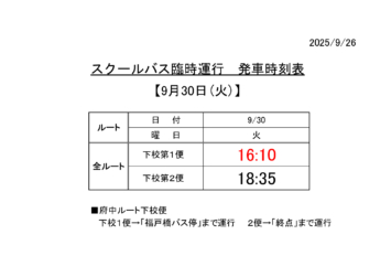 ホーム最新情報【スクールバス】9/30(火)と10月の運行について