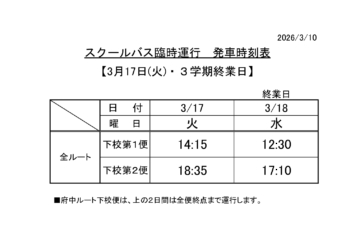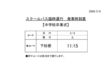 ホーム最新情報【スクールバス】 3/14(土)・17(火)・18(水)の運行について