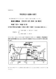 大運動会はどなたも自由に参観できます。そのため非常に多くの方が来校されます。駐車場には限りがあります。また学校周辺の道路の渋滞や事故の発生等は、避けなければなりません。
